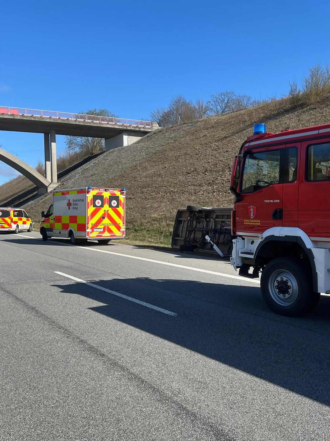 An der Einsatzstelle angekommen, stellte sich heraus, dass ein Transporter umgekippt war. Unsere Aufgabe bestand darin, die Einsatzstelle abzusperren und abzusichern.